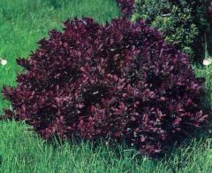 150-200 cm magasra növő, sűrűn ágas, gömbölydedcserje. Levele kicsi, barnásvörös, ősszel kárminpiros színű.